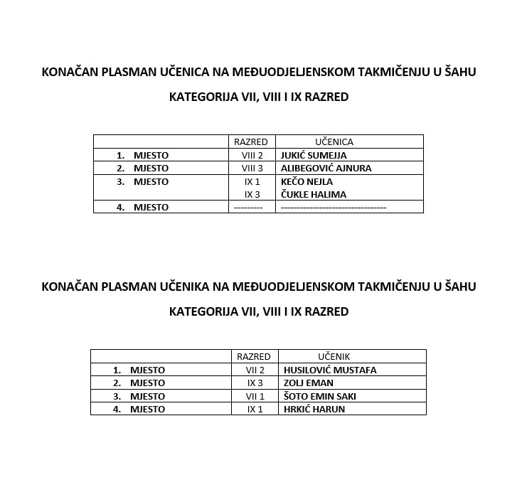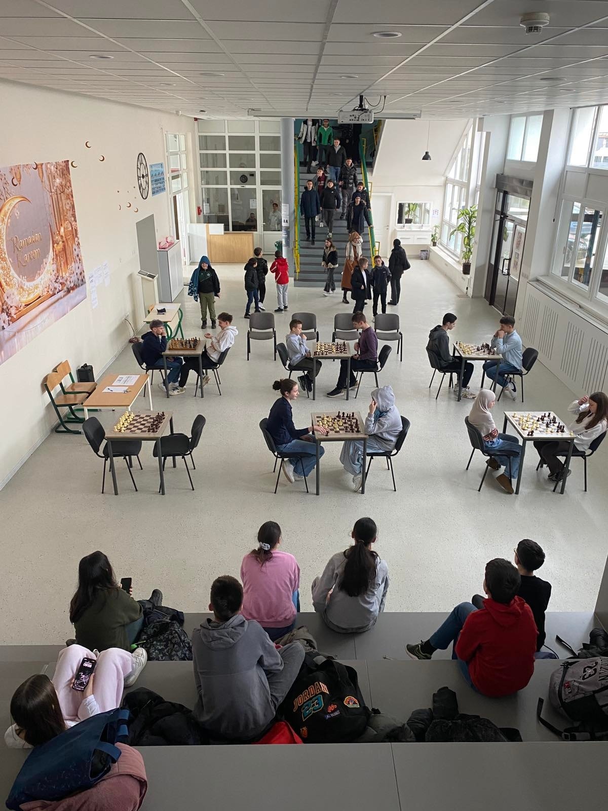 Danas je u holu škole vladala posebna atmosfera – spoj koncentracije, takmičarskog duha i tihog uzbuđenja. Održano je međuodjeljensko takmičenje u šahu za učenike VII, VIII i IX razreda, koje je okupilo mlade zaljubljenike u ovu plemenitu igru uma.