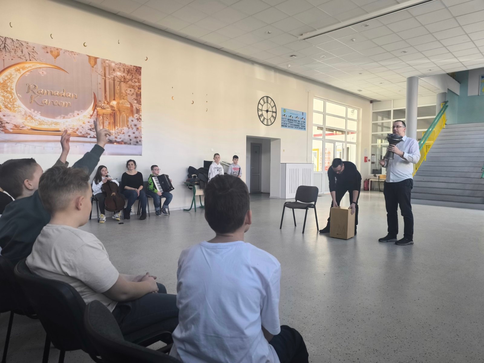Danas su se u prostorijama naše škole učenicima 3. razreda predstavili učenici i nastavnici JU „Osnovna muzička škola“ Ilidža. Ovom prilikom su učenici mogli vidjeti koje to sve instrumente mogu svirati ukoliko od naredne školske godine upišu spomenutu muzičku školu. Zanimljivo je bilo vidjeti i čuti kako učenici, malo stariji od naših devetogodišnjaka, uveliko sviraju harmoniku, klarinet, violončelo…
