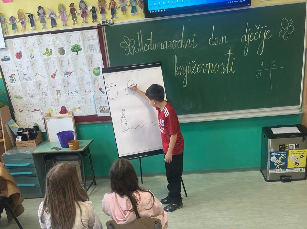 Povodom Dana dječije književnosti koji se obilježava svake godine 2. aprila, bibliotekarka škole Merima Mešić održala je kreativan i zabavan književni izazov u četvrtom razredu.