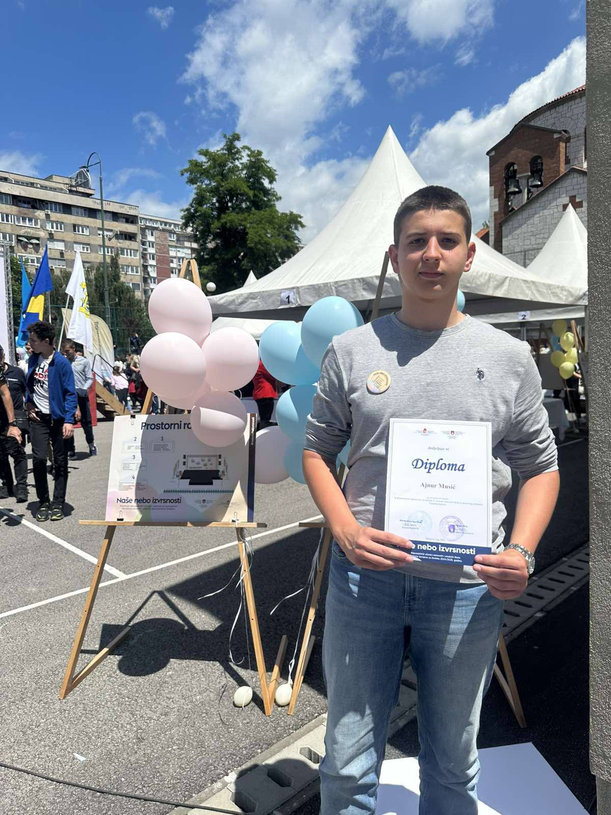 Manifestacija “Naše nebo izvrsnosti ” ove godine je održana u prostoru Treće gimnazije. Veoma smo ponosni što je, sa osvojenim II mjestom na kantonalnom takmičenju iz Tehničke kulture, i naš maturant, Ajnur Musić, među najuspješnijim učenicima Kantona Sarajevo. Zahvalnicu za predan mentorski rad dobio je i kolega Jasmin Mujić. Čestitamo od srca!