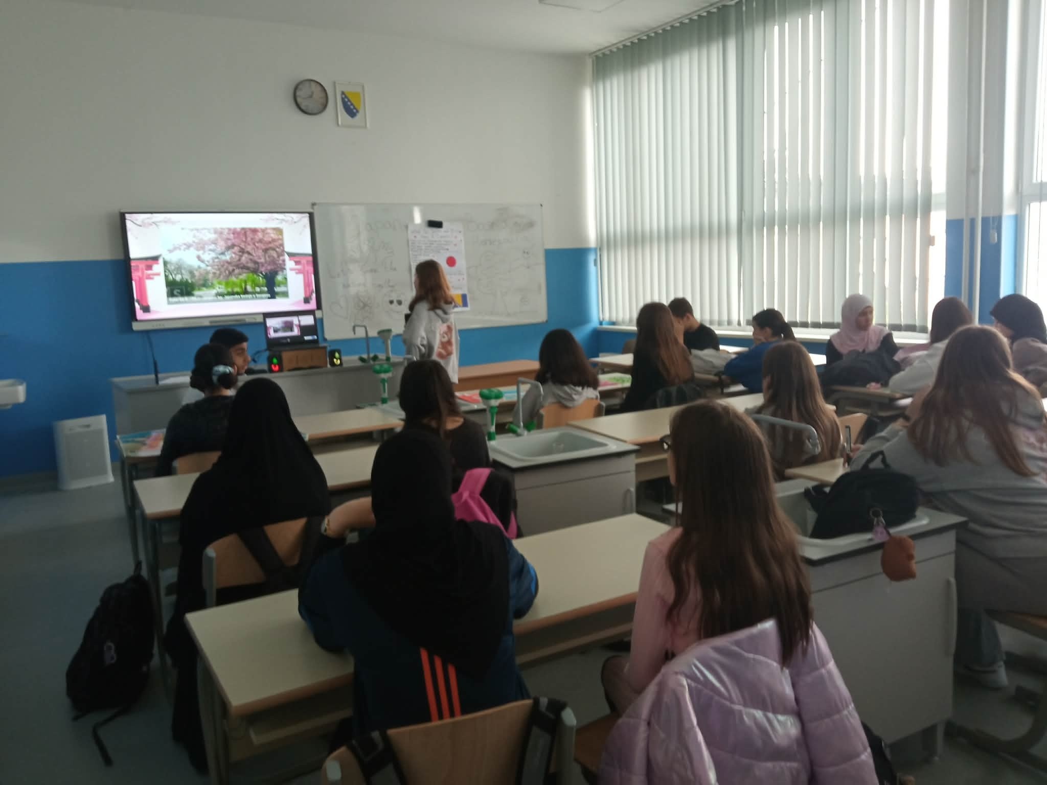 Dana 22.4.2026. godine učenici sekcije “English Club” razgovarali su sa učenicima osmog i devetog razreda male privatne škole iz mjesta Higashiomi-shi, Shiga, iz Japana – zemlje izlazećeg sunca. Kroz dvije prezentacije i razgovor uočili su mnoge različitosti, ali i brojne sličnosti između ove dvije daleke zemlje. Naša Adna Cocalić (VIII-1) iznenadila ih je i oduševila svojim znanjem o Japanu. Nadja i Dalila predstavile su ilustracije obje zemlje, dok su Ajlin i Dino istakli da Japan i Bosna imaju mnogo zajedničkog: ljubav prema domaćoj hrani i porodičnim okupljanjima, poštovanje prema starijima, njegovanje tradicije i praznika, kao i tradicionalne odjeće i narodnih plesova. Posebno su naglasili da se u Japanu poštovanje iskazuje naklonom, dok se u Bosni ono izražava kroz srdačne pozdrave i gostoprimstvo. Japanski učenici istakli su da je za njih ovo bio nezaboravan susret, a svi zajedno izrazili su želju da se ovo prijateljstvo nastavi i u budućnosti.
