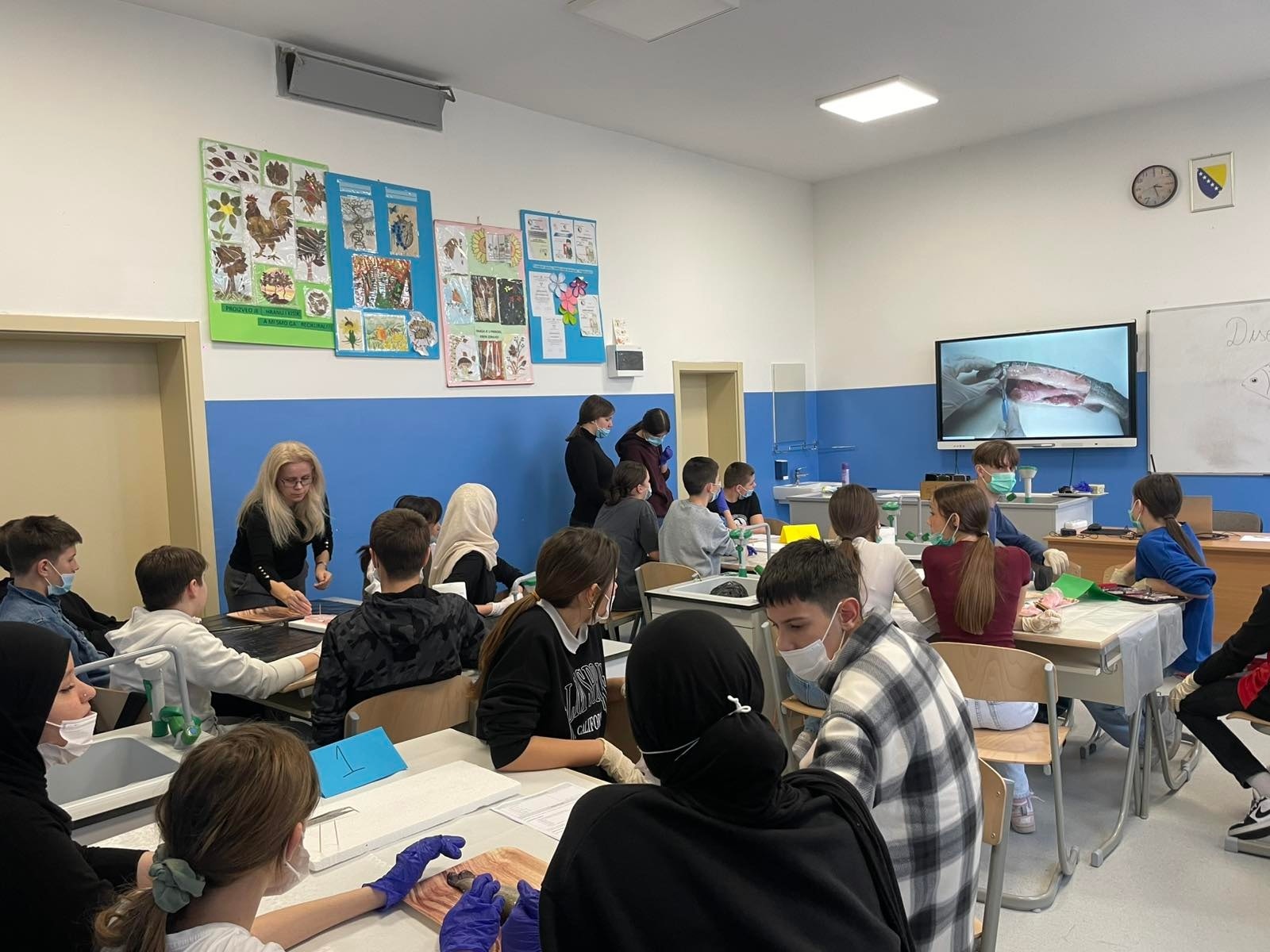U odjeljenjima VIII razreda realizovana je praktična vježba iz biologije – disekcija ribe.