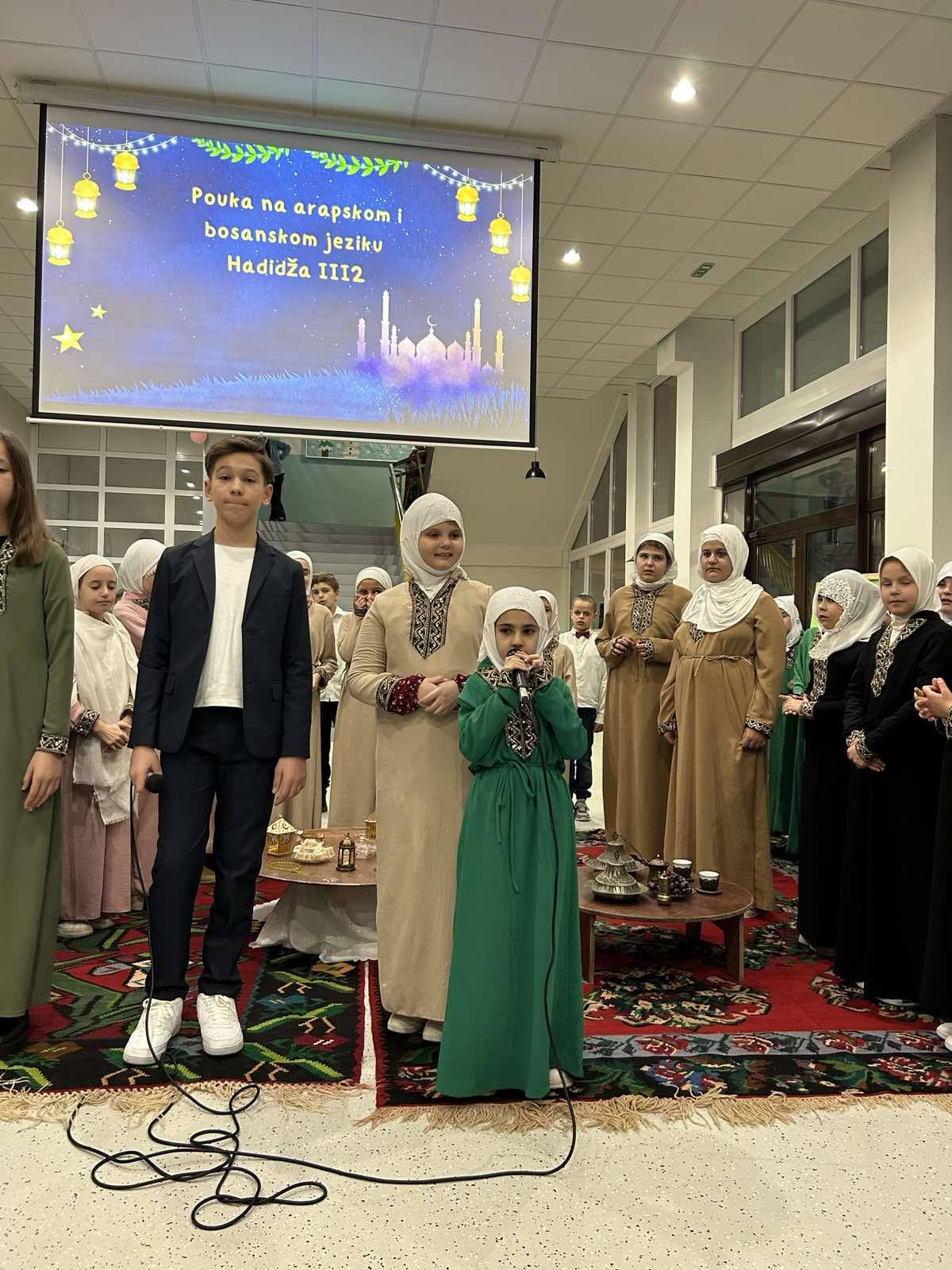Učenici su sa puno truda i emocija izveli pripremljene tačke, a publika – nastavnici, roditelji i učenici – pažljivo su pratili i uživali. Posebno su se istakle ilahije koje su unijele posebnu atmosferu mira i duhovnosti.